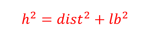 Além do vetor direção (vd), tem-se o vetor ponto (vp) definido entre os pontos P0 e P1. A distância h é a hipotenusa do triângulo retângulo, que tem como catetos dist e lb (Figura 3). Assim, pelo Teorema de Pitágoras: