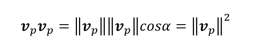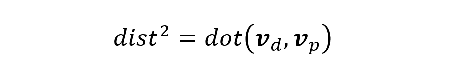 Por outro lado, o cateto dist é o resultado do produto escalar do vetor direção (vd) pelo vetor ponto (vp):