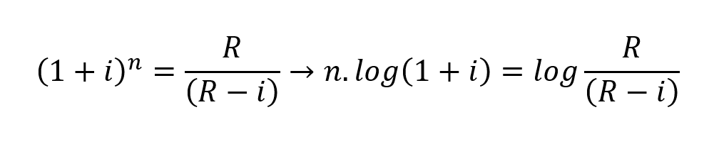 Isolando o termo que contém n e aplicando o logaritmo, tem-se: