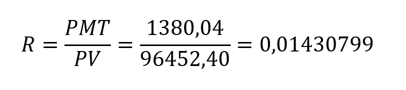 Onde R é a razão entre PMT e PV.