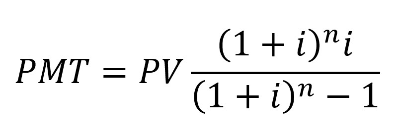 A conhecida fórmula e de domínio público para se calcular a prestação mensal (PMT) é: