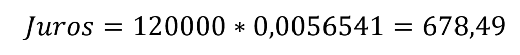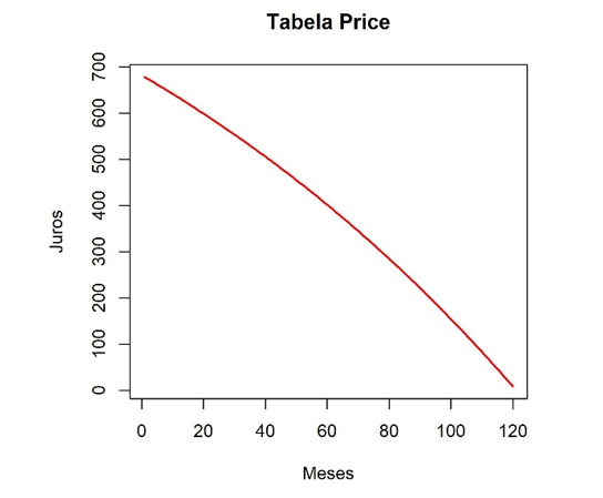 Figura 1: Juros calculados na Tabela Price, para um financiamento de R$ 120000,00 por um prazo de 10 anos com juros anuais de 7%.