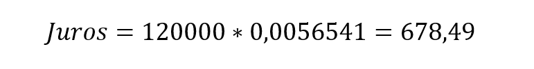 No primeiro mês, os juros são calculados sobre o valor financiado de R$ 120.000,00, conforme segue: