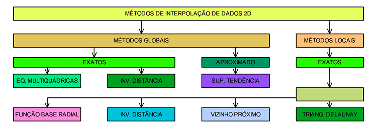 O próximo passo consiste na escolha do método de interpolação de dados 2D, que pode ser global ou local (Figura 3).