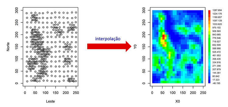 Neste artigo, iremos mostrar como se pode fazer a interpolação de dados geoespaciais e sua representação em mapa como ilustra a figura abaixo.