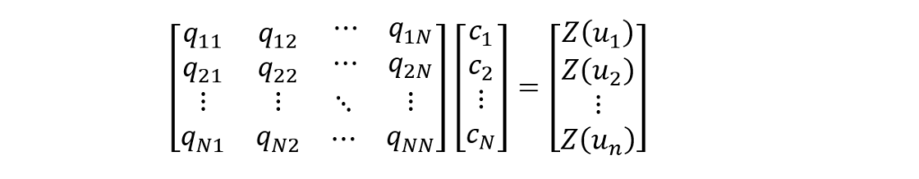 Onde os coeficientes {c_i,i=1,N} são determinados pela resolução de um sistema de equações lineares (Hardy, 1971, p. 1907):