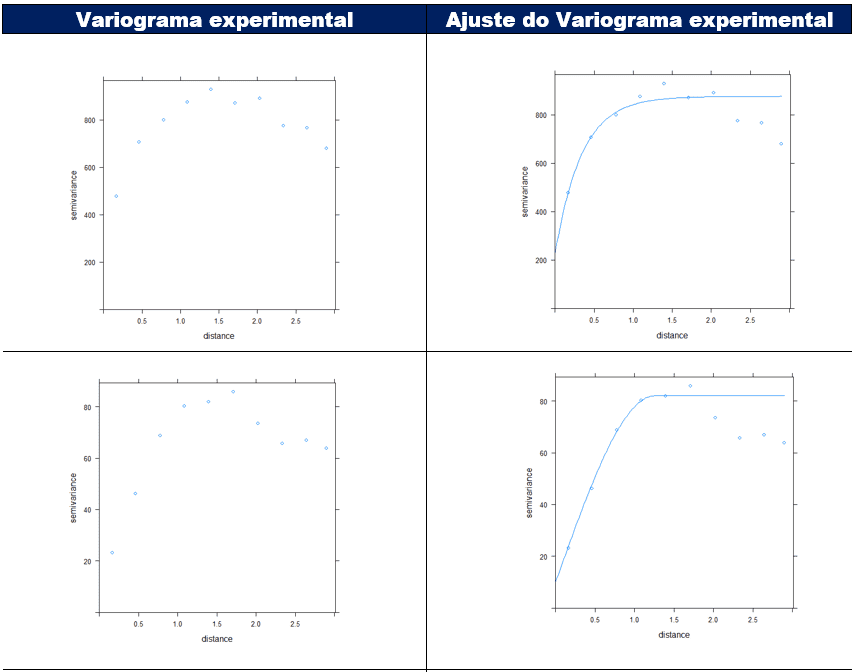 - A função vgm() é um ajuste visual e um dos métodos que já foi utilizado na lição anterior para o ajuste do variograma anisotrópico.