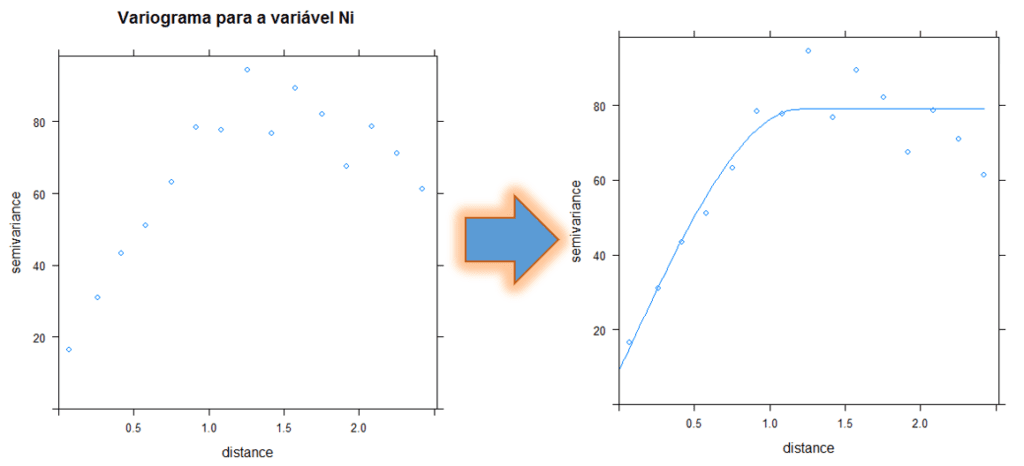 model: modelo variativo variável dependente, definido pela função vgm ou fit.variogram