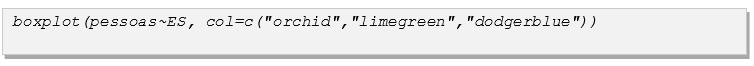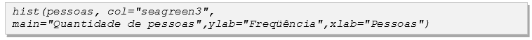 A representação gráfica dos dados será projetada por meio dos comandos vistos na lição 5, tais como: hist(), boxplot, e barplot()
