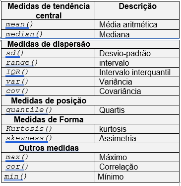 A tabela a seguir mostra os comandos básicos que usamos na lição,para análise de dados: