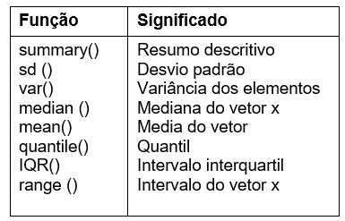 R possui funções estatísticas que são aplicadas em vetores e matrizes: