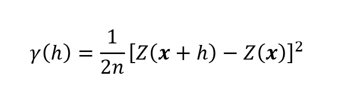 Onde, Z(x) representa uma variável aleatória conforme o vetor de coordenadas (x), h é a distância de separação entre dois pontos e n é o número de pares de pontos separados por h.