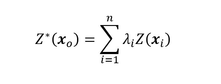 Onde λi, i=1,n são os pesos da krigagem ordinária associados aos n pontos de dados e xo é o centro da célula da malha regular.