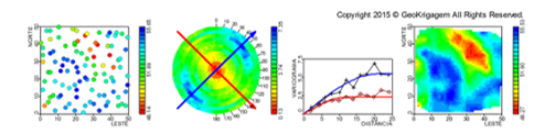 Assim, a geoestatística tem um papel fundamental na avaliação de recursos minerais, fazendo o melhor uso dos dados disponíveis, transformando-os em informação útil e confiável. Apenas a título de ilustração, a Figura 1 mostra a estimativa por krigagem ordinária resultante do modelo de variograma obtido a partir dos dados de campo.
