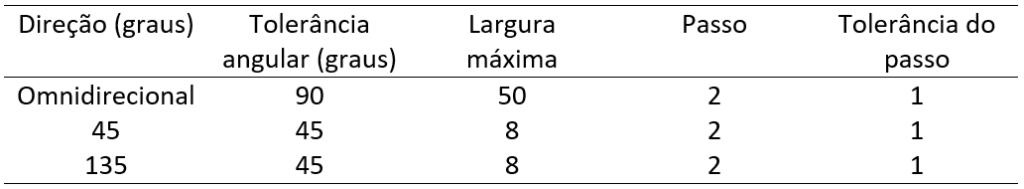Tabela 1: Parâmetros para cálculo de variogramas experimentais.