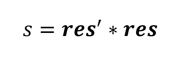 O erro é calculado pelo produto escalar do vetor de resíduos (2), como: