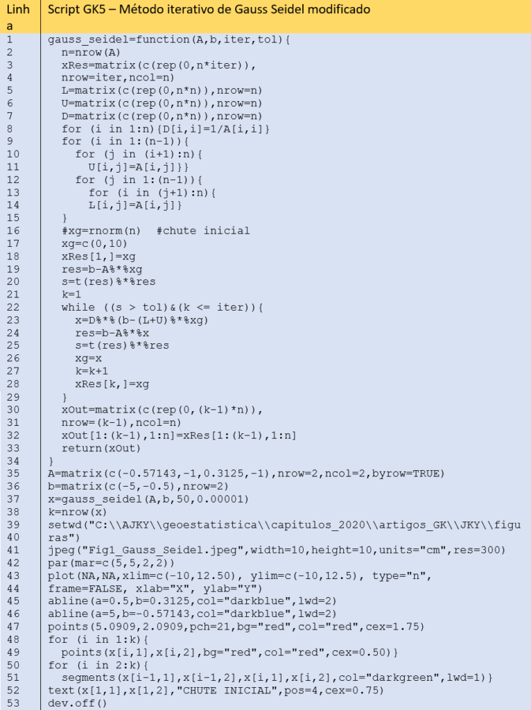 O Script GK4 resolve o sistema de equações lineares pelo método de Gauss Seidel, parcialmente baseado em código MATLAB de Venkateshan e Swaminathan (2014, p. 88-89).