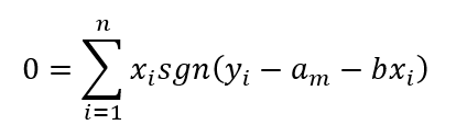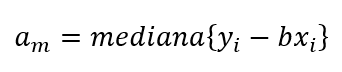 Esta equação implica que os coeficientes a e b da regressão dos mínimos quadrados são conhecidos, ou seja, o ponto de partida para a regressão robusta é justamente a realização da regressão dos mínimos quadrados.