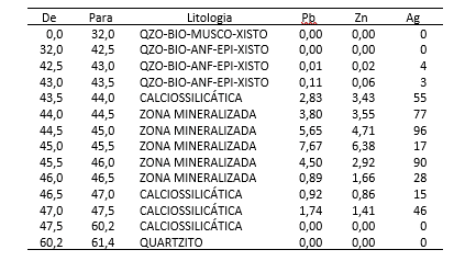 Adrianópolis (segundo Yamamoto e Rocha, 2001, p. 46). Dados de Pb e Zn em (%) e Ag em ppm.