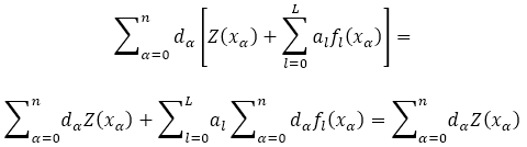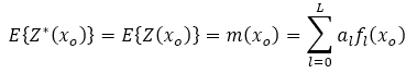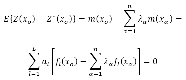 Observe-se que para L=0, a condição de restrição se torna ∑αλα = 1, ou seja, a krigagem ordinária. Segundo Journel (1989, p. 19), as L+1 condições de restrição também são conhecidas como condições de universalidade, pois garantem o não viés, quaisquer que sejam os coeficientes desconhecidos (al, l=0,L).
