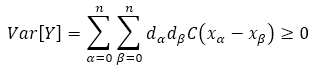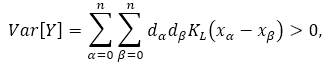Qualquer combinação Y=∑nα=0 dα Z(xα), tal que os pesos dα estejam sujeitos a (L+1) condições de não viés, denomina-se incremento generalizado de ordem L, cuja variância em termos da covariância intrínseca KL(h) se torna (Journel, 1989, p. 20):