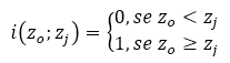 Introduz-se assim a função indicadora em relação a um limiar zo, como (Journel, 1989, p. 22):