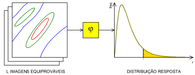 A distribuição resposta permite determinar a probabilidade que o valor em um ponto não amostrado é maior que o limiar ro, ou seja, P(R > ro). Isso significa que em cada ponto não amostrado existem L valores que podem ser representados por uma função de distribuição acumulada condicional. Sendo que ela é caracterizada pelos dois momentos: a média e a variância.