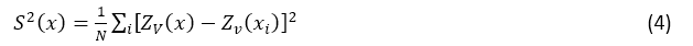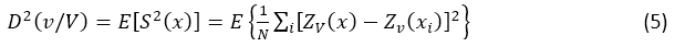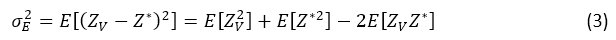 A partir da equação (3) se desenvolve a variância de estimativa, considerando o estimador da krigagem ordinária, como se apresenta neste livro. Outro conceito relacionado à incerteza se refere à variância de dispersão, que se desenvolve a partir da seguinte relação, segundo Journel e Huijbregts (1978, p. 63):