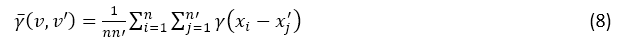 é o valor médio da função ϒ(h) quando uma extremidade do vetor h descreve o domínio v e outra extremidade descreve independentemente o domínio v’. Esse valor pode ser calculado numericamente, onde a integral é substituída por uma somatória (Journel e Huijbregts, 1978, p. 97):