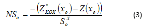 A estimativa da krigagem ordinária (equação 1) está suavizada, ou seja, isso significa que os baixos valores são superestimados e os altos valores são subestimados. O ponto de partida para a correção do efeito de suavização está na determinação da incerteza associada, como se descreve a seguir.