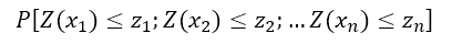 Na verdade, pode-se usar a expressão seguinte que descreve uma função de distribuição acumulada conjunta, que caracteriza o depósito mineral em termos de sua distribuição de frequências (Matheron, 1976, p. 13):